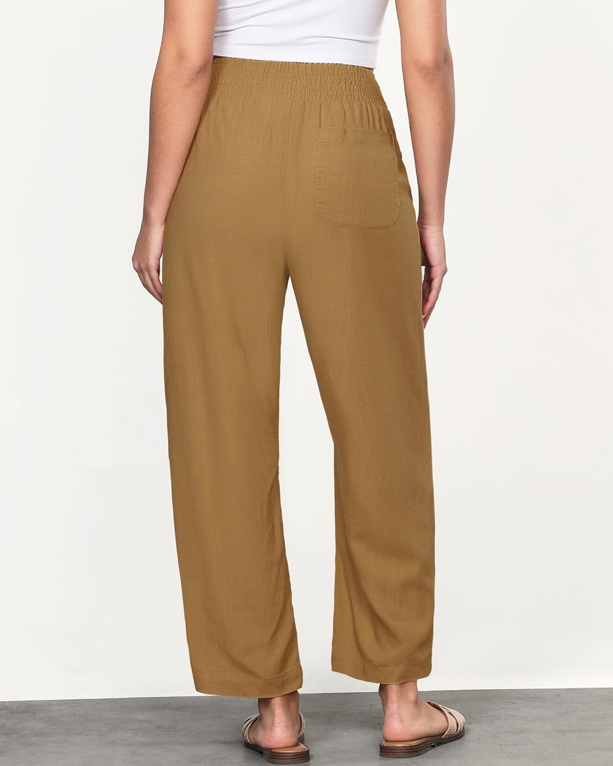 - Constructed with high waist and ankle length, smocked waist pants elongate the legs and give the illusion of a more defined waistline and a taller frame
