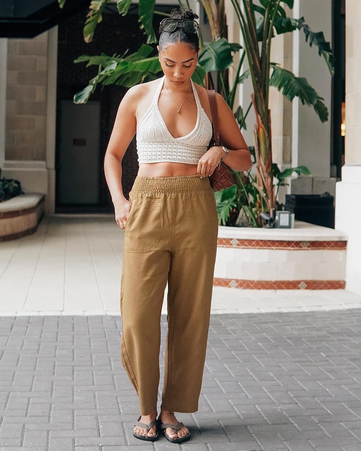 - Made in breathable linen material without stretch for cozy wear and shape retention, womens beach pants are recommended to match with light color underwear for a more understated approach