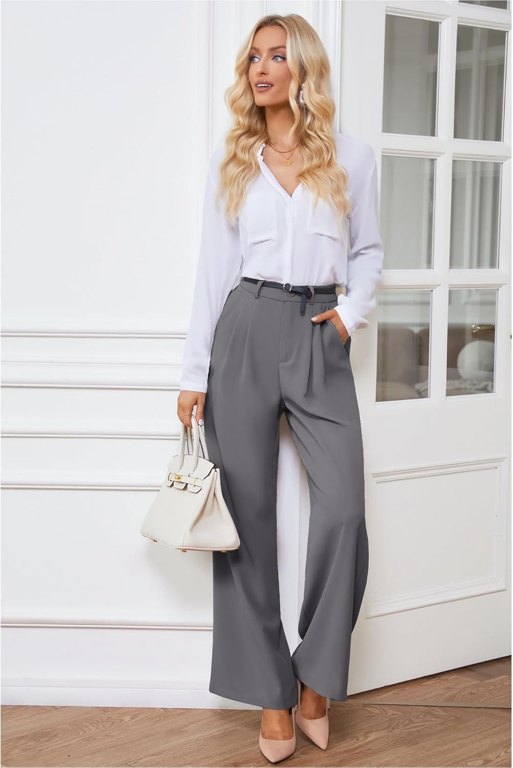 Pants for Women Work Business Casual High Waisted Dressy Pants Flowy Trousers Office