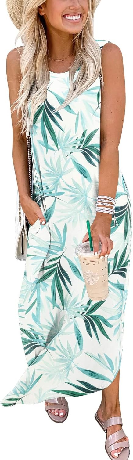 • Design:Sleeveless,crew neck,Long dress,side slit,summer beach dress,solid dress,tie dye dress,printed dress,casual loose fit.