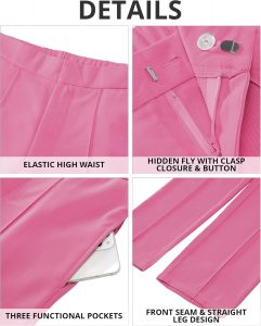 • INSEAM: 28 inches; the elastic high waist of the dressy pants for women provides a comfortable and flexible fit; it allows for easy movement and accommodates different body shapes and sizes; the stretchy nature of the waistband ensures a snug yet comfortable fit, making these pants good for long hours of wear