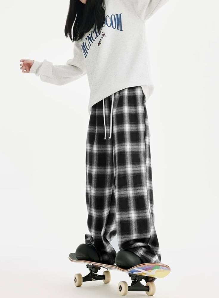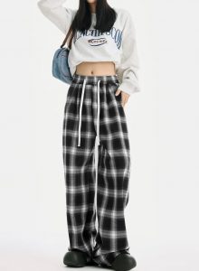 - Match: Plaid pants can be paired with oversized tee, sweaters, coats, crop tops or a cami tee. They can be perfectly matched with any of your tops to create a casual and fashionable style. Suited for most seasons, these plaid pjs for teen girls are a go-to choice for teen girls seeking a balance between trendy, grunge clothes, or goth clothes fashion and cozy comfort, ensuring they stay in vogue throughout the year.