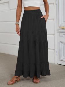 - Features – Maxi, long, tiered, a line, high waisted, elastic. This fashion skirt is perfect for any occasion, such as a casual outing, a wedding ceremony or a birthday party. Because of its lightweight and breathable fabrics, this skirt is suitable for staying cool on hot summer days and nights.