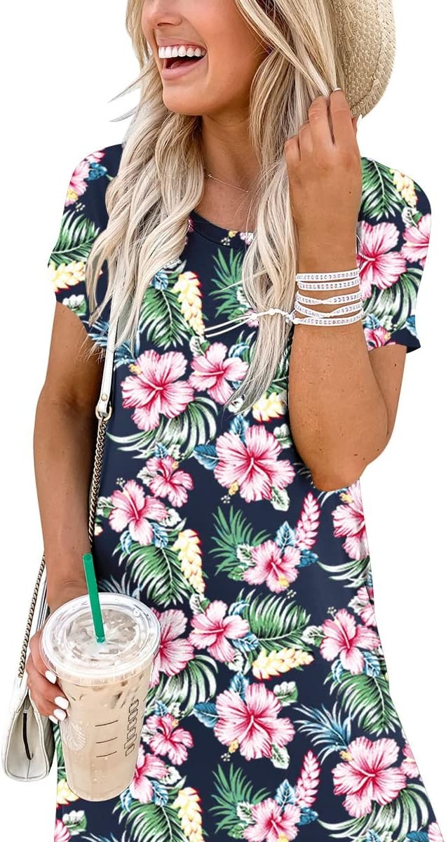 - Features – Women’s summer casual dress, crew neck, short sleeve.This women’s casual dress perfect for daily wear, beach, home, party.
