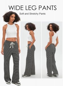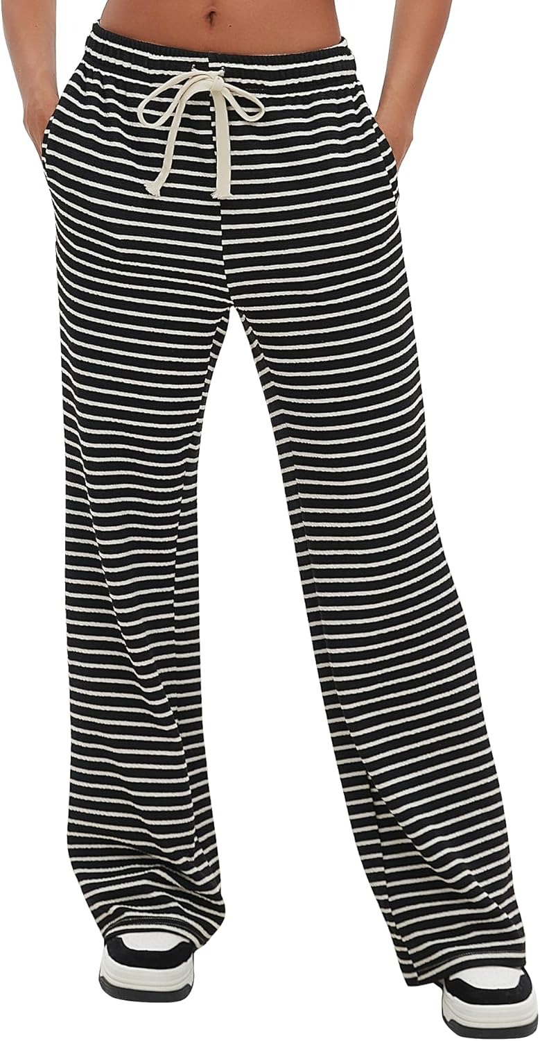 - 【Design】Elastic waist, drawstring, stripe print, wide leg. Comfy, soft and stretchy pants. The design helps hide any flaws in the belly area and added comfort. Our womens wide leg sweatpants are soft-touch, warm, breathable, wear-resistant, sweatpants for women is an excellent choice which can make you feel comfortable anytime.